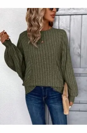Apricot Loose Rib Knit Long Sleeve Sweatshirt For Women
