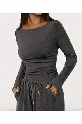Women's Solid Color Crew Neck Long Sleeve T-Shirt And Waist Tie Pants Casual Suit, Spring & Autumn