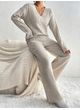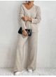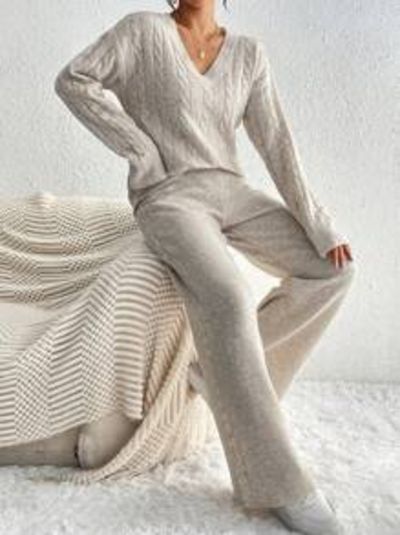 2pcs Women's Solid Color Simple V-Neck Long Sleeve Top
