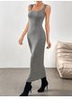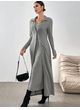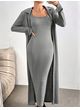 Women Casual Solid Color Front Button Long Coat And Sleeveless Bodycon Dress Set