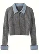 Women's Chic Navy Blue Knit Cardigan with Collar and Button Detail