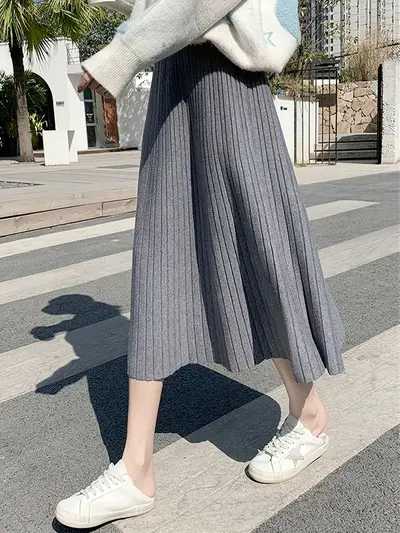 Women's Elegant Pleated Knit Long Skirt