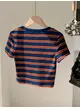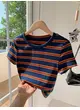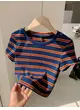 Women's Fashion Casual Sports Slim Striped Round Neck T-Shirt